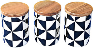 • ?ELEGANTES DESIGN: 3 Elegante Vorratsdosen mit Deckel aus Akazienholz. Hochwertige Keramik, ein Schmuckstück nicht nur für die Küche.
