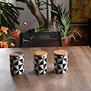 Die handgearbeiteten Keramikdosen mit Deckel aus echtem Akazienholz eignen sich perfekt zur Aufbewahrung von Dingen aller Art wie Kaffee, Tee, Keksen, Gewürzen und vieles mehr. Sie können aber auch zur Dekoration in Wohnzimmer, Schlafzimmer oder Bad verwendet werden. Platzieren Sie die Aufbewahrungsdosen auf einem Tisch, einer Kommode oder in einem Regal um sich an ihrer Schönheit zu erfreuen.