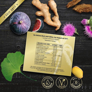 Wie es funktioniert? Mit den Superhelden Magnesium, Pinierinden / Kieferbaumrinden Extrakt, Feige Extrakt, Mariendistel Extrakt, Zink, Kurkuma Extrakt, Ingwer Extrakt, Kamille Extrakt, Ginkgo Biloba Extrakt und Vitamin B1 (Thiamin).
