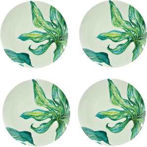 Kleine Porzellanteller Ø20,5cm Salatteller Frühstücksteller Dessertteller Vorspeisenteller 4er-Set mit orientalischen Blattmotiven Design Green Love